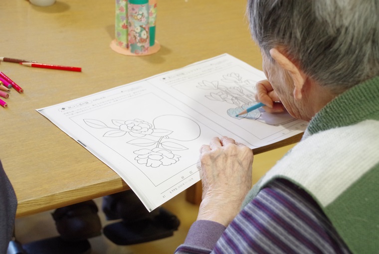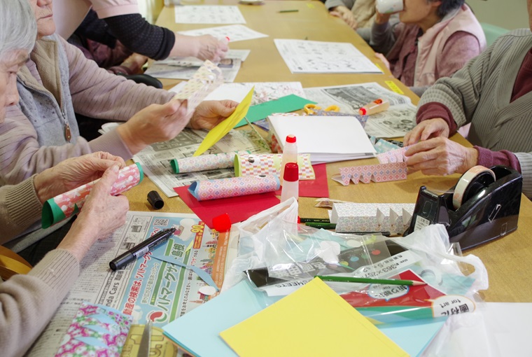 | 生活リハビリ | 手芸、貼り絵など生活リハビリを取り入れて、心理的機能低下を防止するように努めます。 |